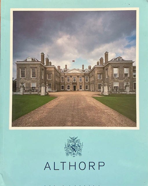 But there is one book - a large thin 46 pages with a shiny pale blue cover - that can’t find a pile to sit on. It gets moved from the used bookstore pile, to the recycle box, to the library book sale bag, to its own pile of one. It is called simply Althorp, and is the souvenir from my visit to Princess Diana’s home in England. It covers the history of the stately home, and of the current Earl’s famous sister, displays of her toys, clothes etc. Tucked inside is a paper napkin from the café newly built in the stables, where we visitors had tea with Diana’s favourite scones. I visited Althorp in 1998, that first summer after Diana’s death. The atmosphere was surreal, dozens of us mourners lining up across a misty field at nine a.m., each clutching flowers to be laid in front of Diana’s memorial, none of us really believing we were there.